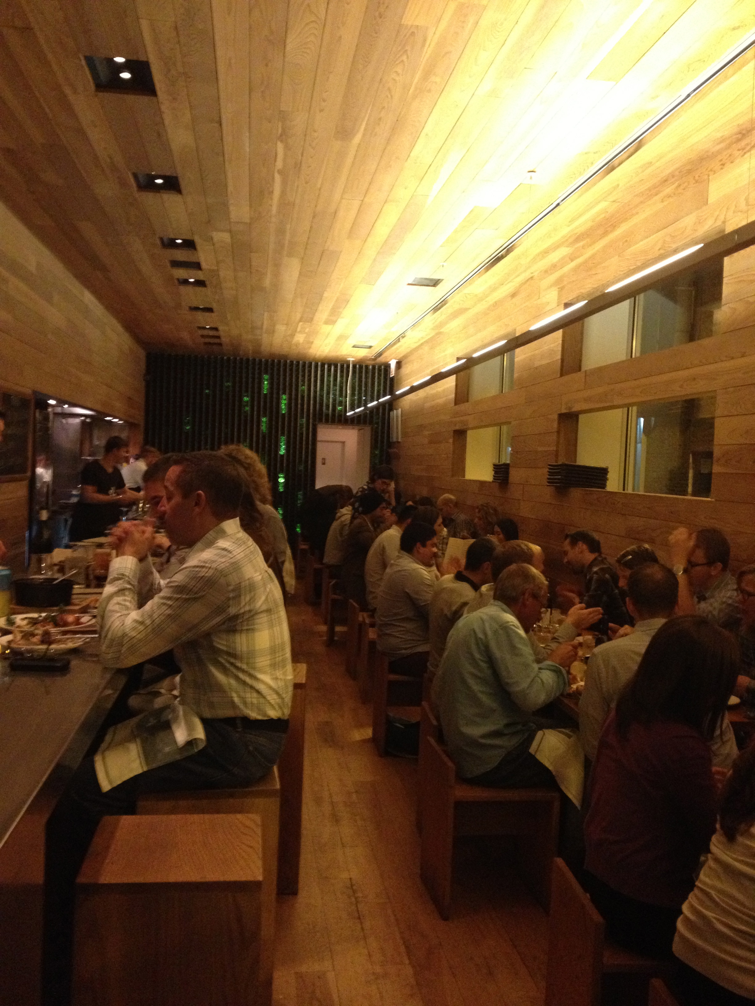 Meaning “with” in French, Avec is the perfect restaurant for old and new friends.  It’s like being in a wooden shoebox with a wall of green bottles at one end.  Some people might find this claustrophobic but only those who are boring too.  The seating is made up of a bar that runs down one side and several long tables on the other.  Upon being seated you can tell that Avec is loud, hip and modern.  The waiter quickly brought us some wine and explained that their food was portioned like tapas but not really.  I have encountered this a lot lately, like tapas are suddenly taboo.  Whatever, bring on the tapas and bring it they did!  Seared shrimp with corona beans, radish top pesto, roasted radish and limoncello vinaigrette.  Oyster mushrooms with roasted artichokes, goat feta, endive and black garlic vinaigrette.  Wood-fired pizza with spicy capricola, fresh figs, pistachio pesto and arugula.  Touchdown!
